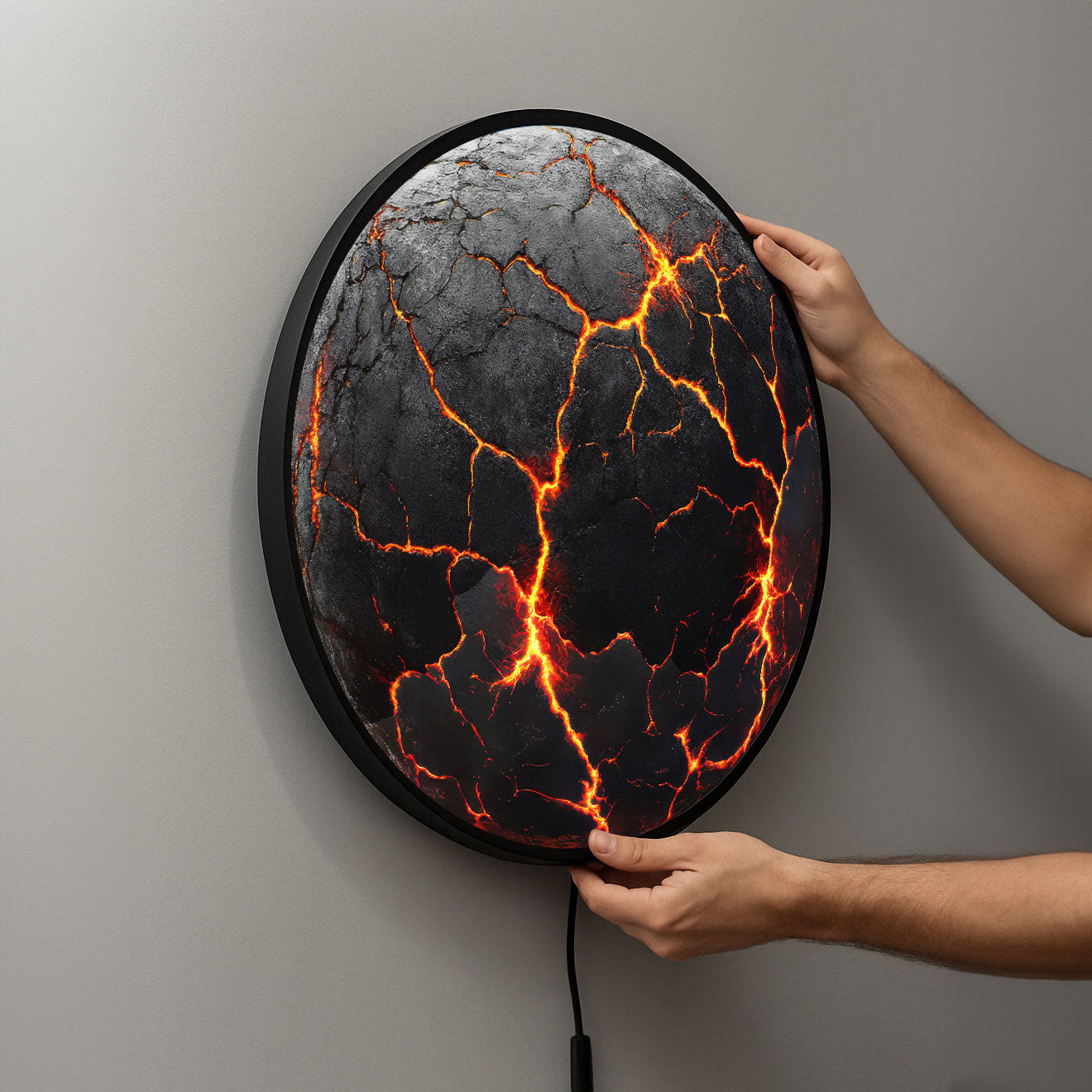For a seamless look, the power cable can exit discreetly from the back of the artwork for a clean wall connection.